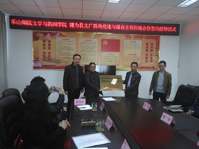随后,双方举行了共建服务型党组织建设基地和实习基地的签约和挂牌仪式,并参观了犍为电视台、犍为人民广播电台等工作场所,就下一步的合作进行工作探讨和交流。
