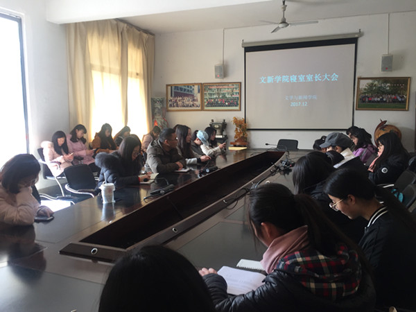 2017年12月5日中午12:40分,公司在学院会议室召开了新葡萄8883官网寝室长大会,公司党总支副书记胡平建主持本次会议,分团委书记、16级辅导员王耀、17级辅导员吴雨洁参加了本次会议,16、17级全体室长聆听了会议。