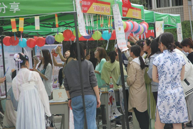 2022年5月19日下午三点,新葡萄8883官网分团委思政部和组织部在桂花广场开展了华服、典籍思政超市展示活动,吸引了众多员工前来打卡,共同体验中国传统文化带来的古典韵味。