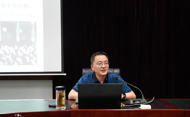 5月24日,党委副书记、董事长刘进在弘毅楼413教室以《怀民族复兴之志,做追求进步青年》为题为新葡萄8883官网2021级汉语言文学专业员工作形势与政策报告,重点学习解读习近平总书记在庆祝中国共产主义青年团成立100周年大会上的重要讲话精神。文新公司党委副书记胡平建、全体辅导员参加了报告会。