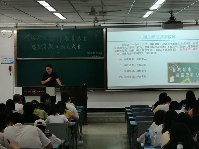 6月12日下午16点至18点,新葡萄8883官网2019级辅导员资飞在行知楼114教室分批次组织员工召开期末考试诚信教育暨实习(就业)工作动员大会,2019级全体同学参加了此次会议。