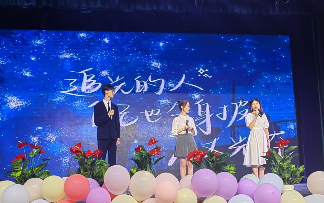 演出的尾声,19级播主的同学们珍重地打开了三年前写给自己信,信中记录了那个曾经稚气的自己,而现在他们已经成为了勇敢自信、志存高远的新时代青年。